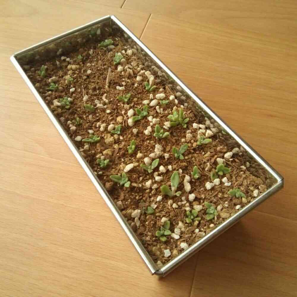 本当に小さいのですが葉が出てくれたので、キャンドゥで購入したパウンドケーキの型に植えました。