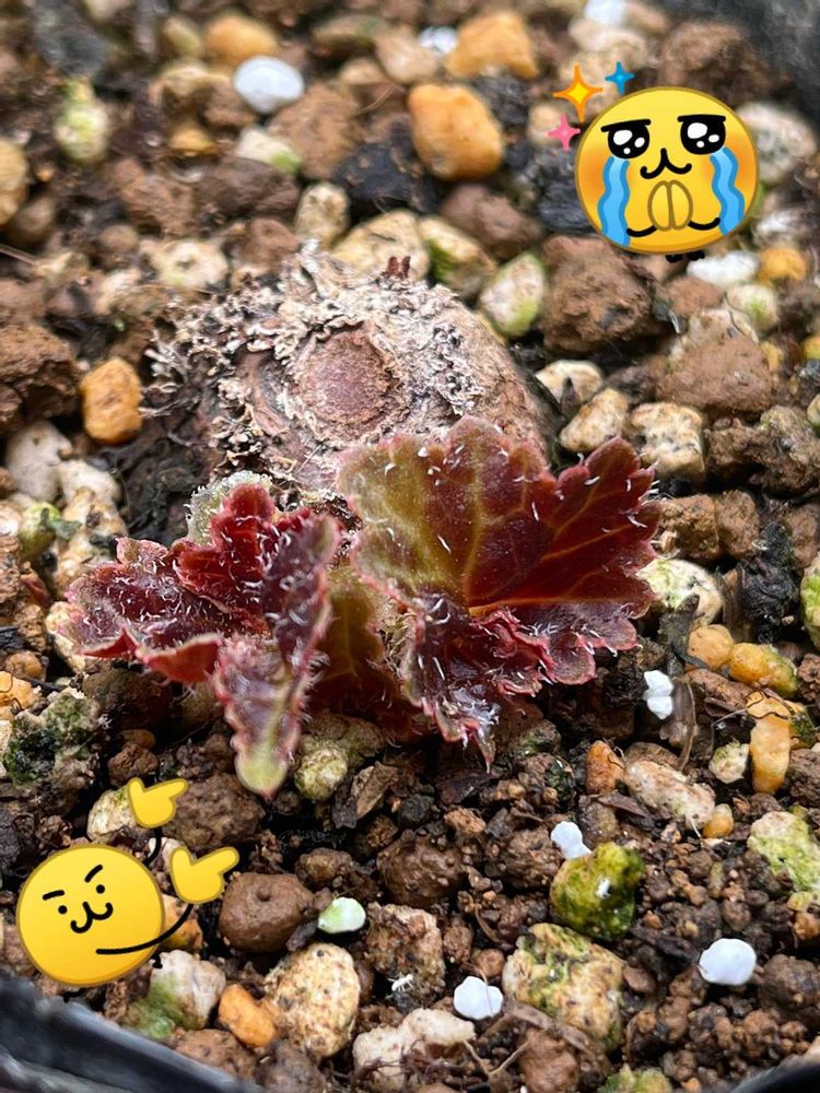 ベコニア…難しいデス…凍えたのか去年末枯らしてしまいました…🫣鉢に何か?残ってたのでもしかして…芽がでるかも…と3月ころから 未練がましくお世話してました~笑 ダメかな?と思っていたら新葉が!!??😂🙌ヤッホーイ♡♡ スーパーのフラワーコーナで購入…やたら茎が太いベコニアでした 名前不明ですが 頑張って引き続き お世話します ~🥰