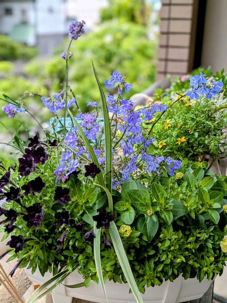 ロベリア💙は、勢いが良過ぎて💪、鉢を占領されそうだったので😅、足元をカット✂️して花数を減らし、風通しが良くなるようにしました🤗