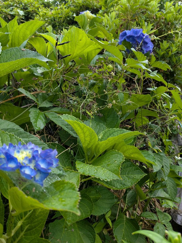 青色の紫陽花が、咲き始めました。👍