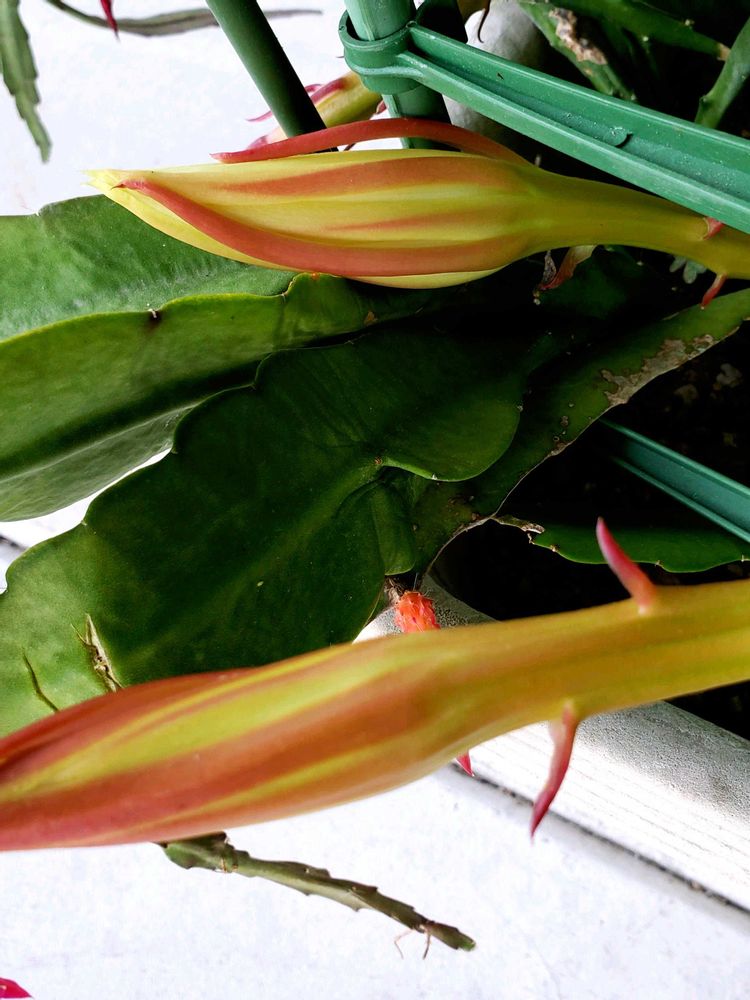 孔雀サボテン,開花前 蕾,今朝4個咲いたの投稿画像