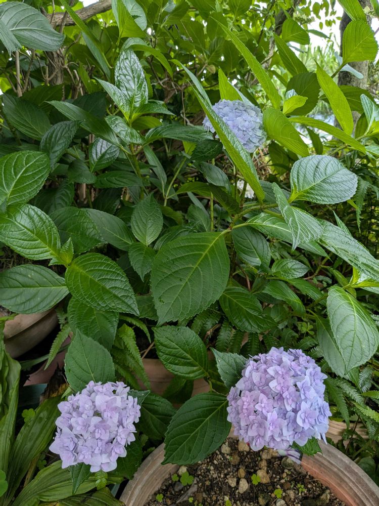 紫陽花。品種名がわかりません。でも品があって、👍😘