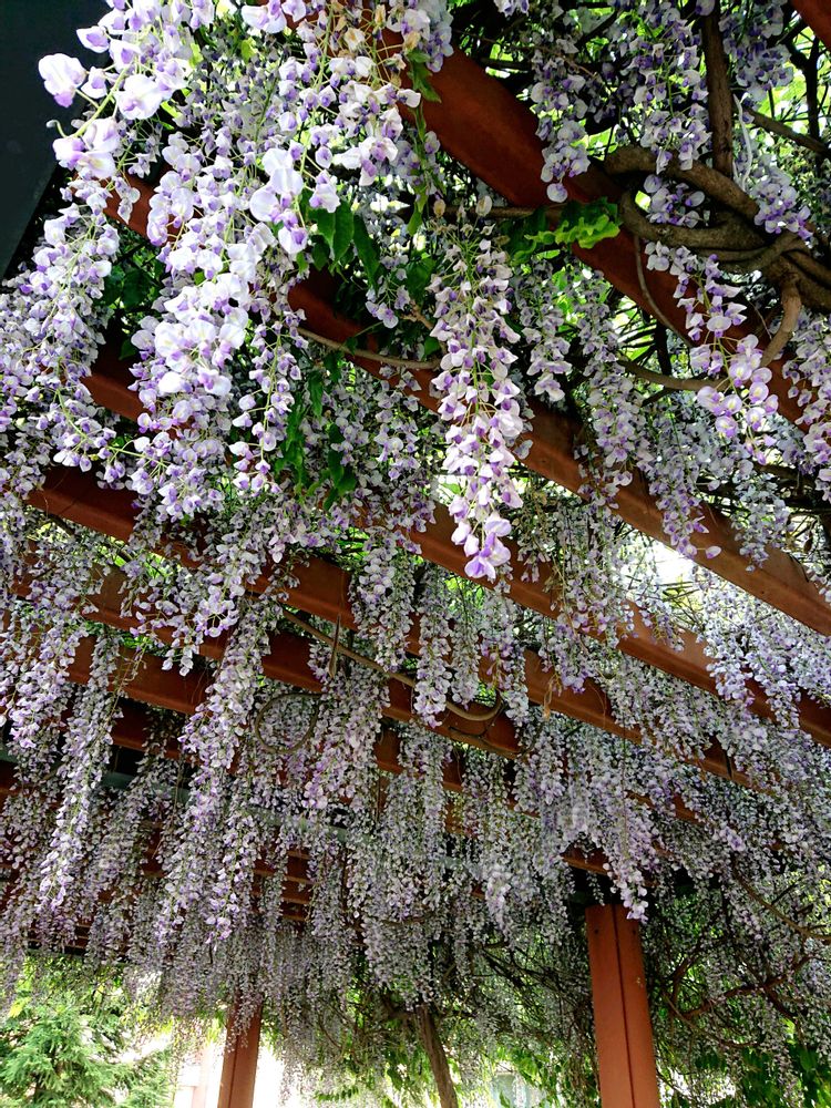 ラベンダー色の藤のお花とグリーンが綺麗ですね〜