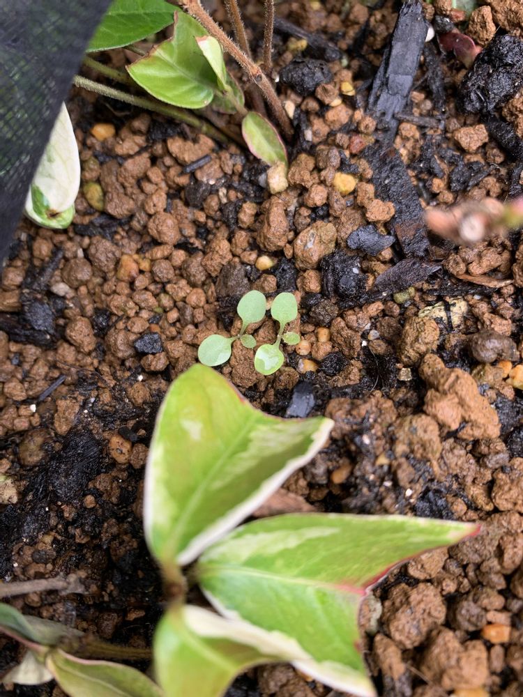 班入りスタージャスミンの挿し木鉢にフレンチラベンダーの種を蒔いてたから…雑草の芽と区別がつかず…💦