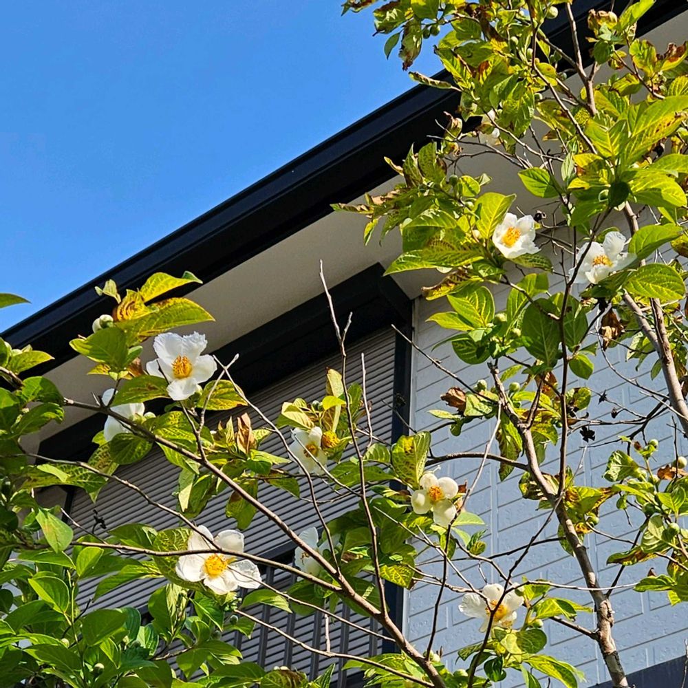 うちのシンボルツリーのナツツバキが咲きました🤍💛🤍