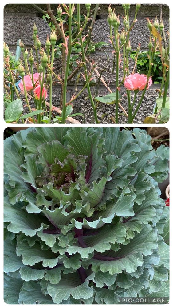葉牡丹,バラ クィーンエリザベス,葉っぱを楽しむの投稿画像