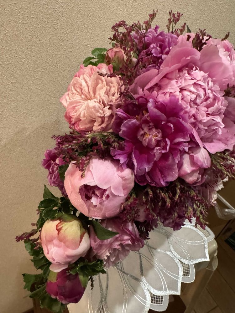シャクヤクのブーケ華やか〜♡娘さん作、素晴らしいです✨