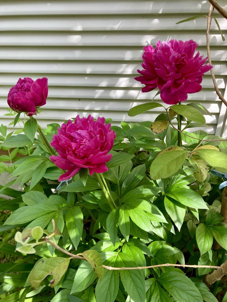 我が家のシャクヤク デュシェス・ド・ヌムール のツボミ まだ二つ残っています。咲くかなぁ