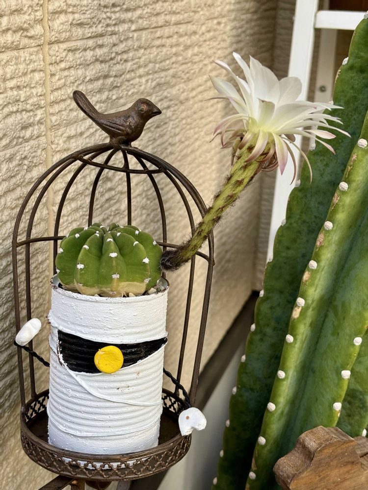 1️⃣昨日の夕方、妖怪リメ缶ミイラ男のサボテンの花芽が大きくなっている事に気付いた!(◎_◎;)エッ