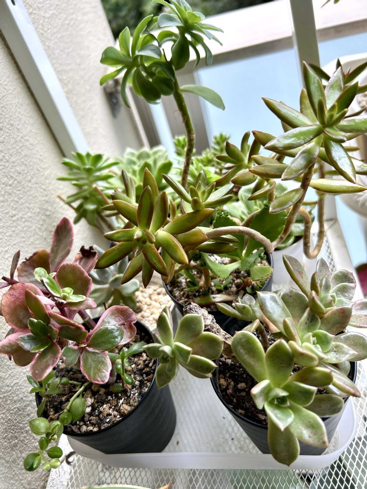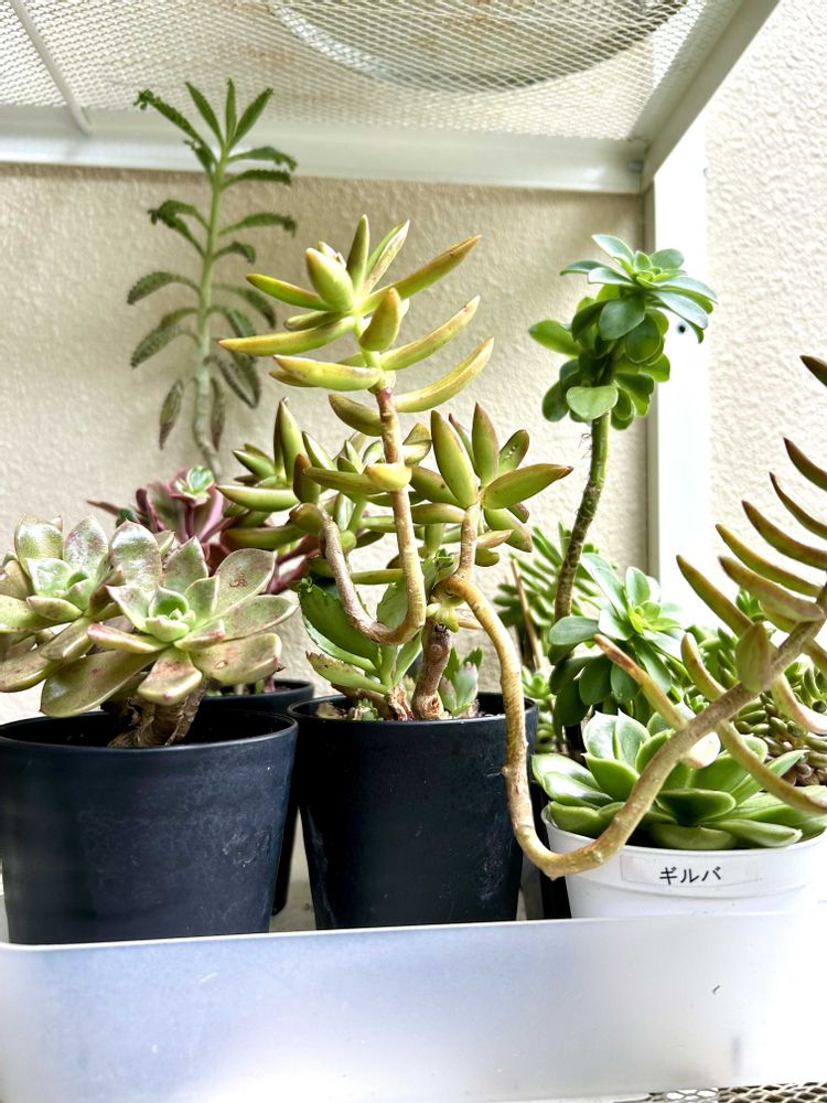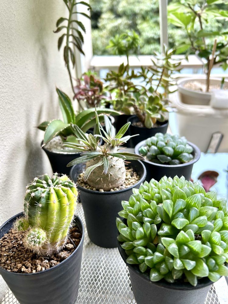 ベランダの個性豊かな多肉さんチーム😊みんな怪獣みたいなカタチをしてますが元気モリモリです〜😊かいじゅう🦖🦕🦧🦍寄せ植えにしようかどうか悩んでます😊