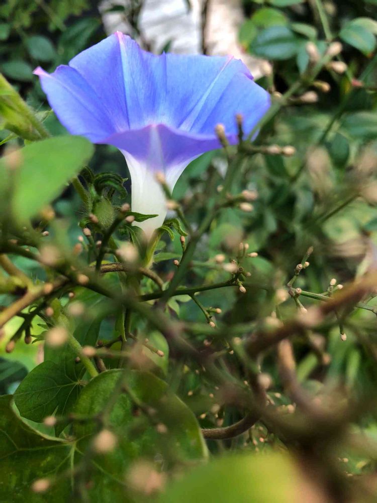 猛暑の夏でしたが、涼しげな一輪の朝顔に出会えました✡️💙