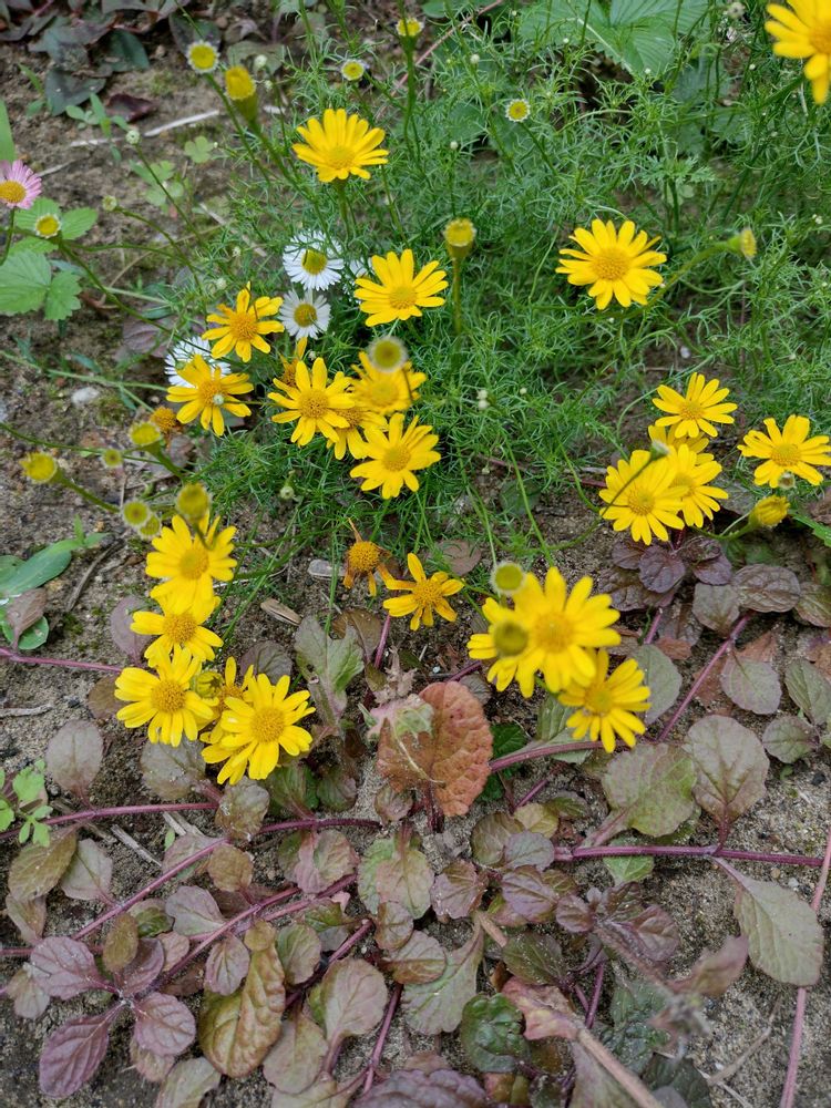 こぼれ種組のダ−ルベルグデ−ジ−さん。あちこちに発芽してます。