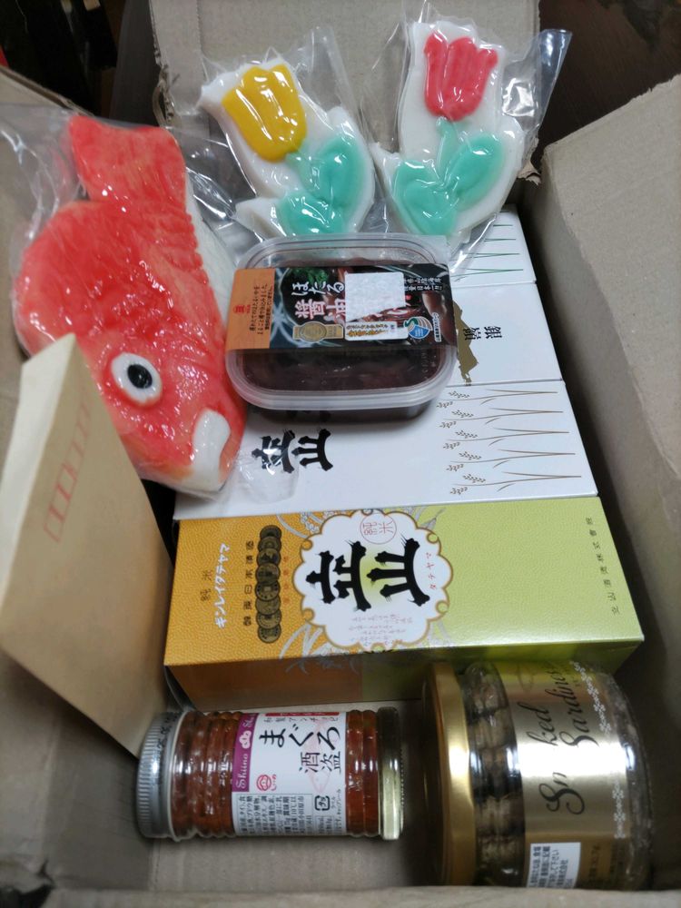 令和7年度 グリーンアップおおいた功労者顕彰を私達夫婦が感謝状と日田杉の盾を頂いたのでお祝いに、立山の銘酒、スモ―クオイルサ―ディン、マイルド和製アンチョビまぐろ酒盗、鯛の蒲鉾、🌷の蒲鉾、ホタルイカの醤油づけと沢山入って送られてきました。皆さんも一緒に召し上がれ🍶
