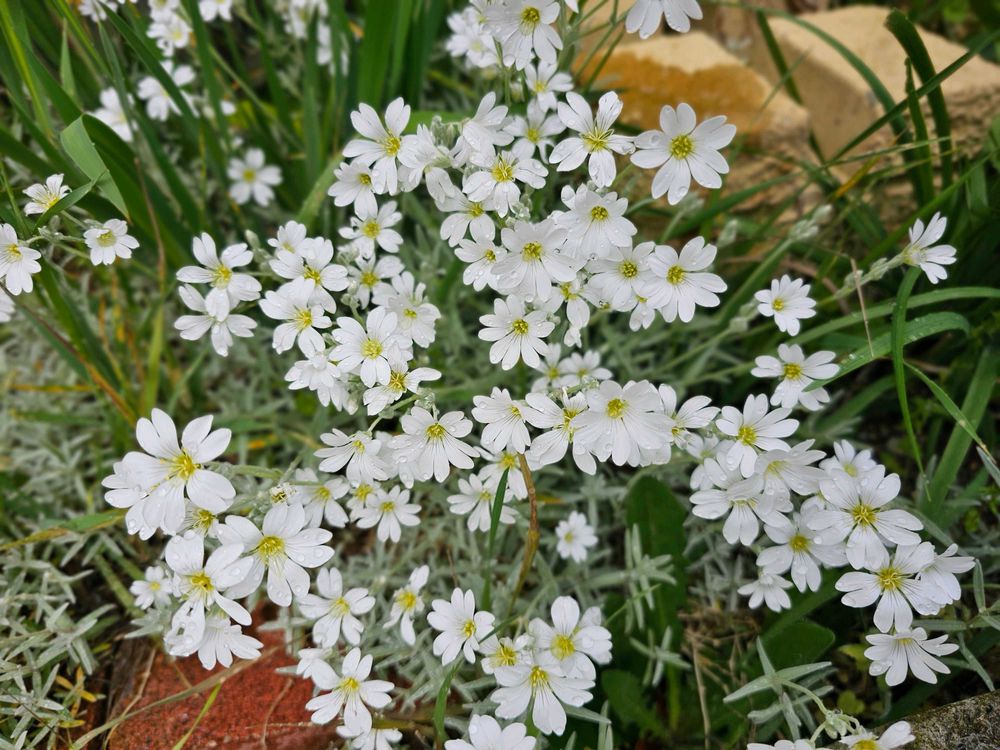 シロミミナグサが汚庭で満開🩷可愛いがいっぱい🩷ただ繁殖の勢いがありすぎ💦