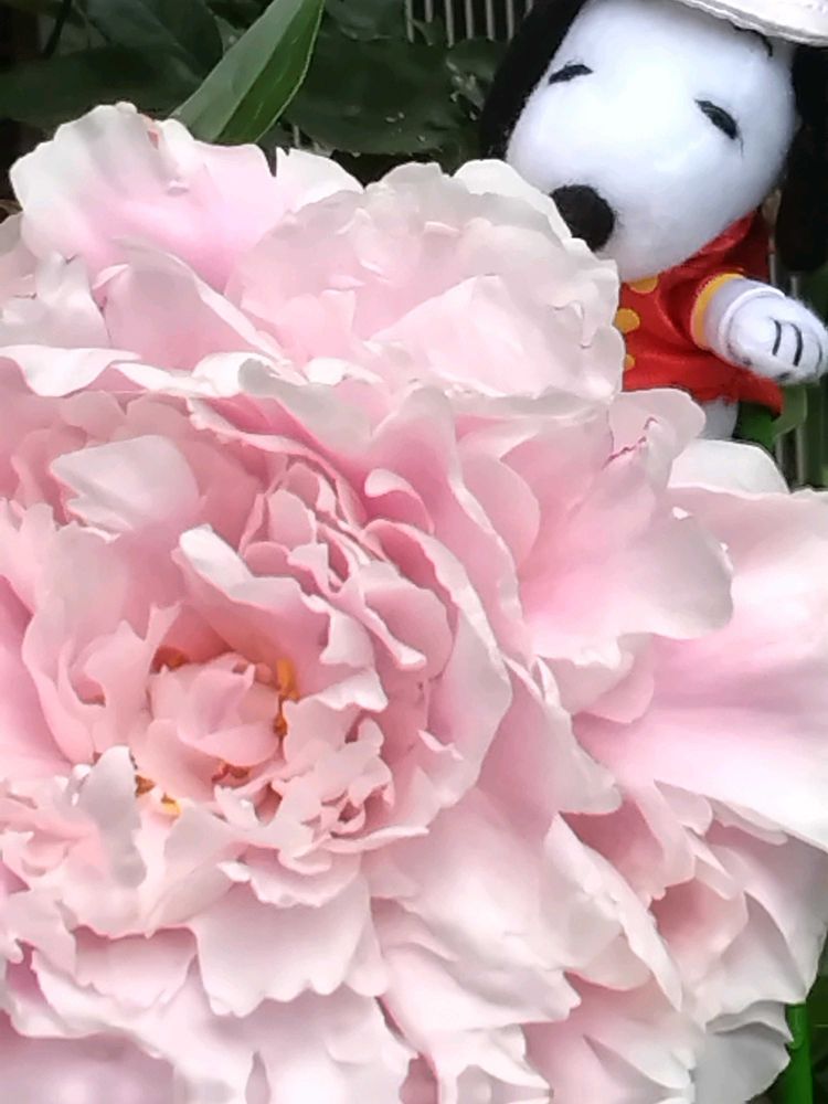 しゃくやく、家にピンクの濃い、薄いのがあるけど、この薄ピンクは、可愛い色だね。💓