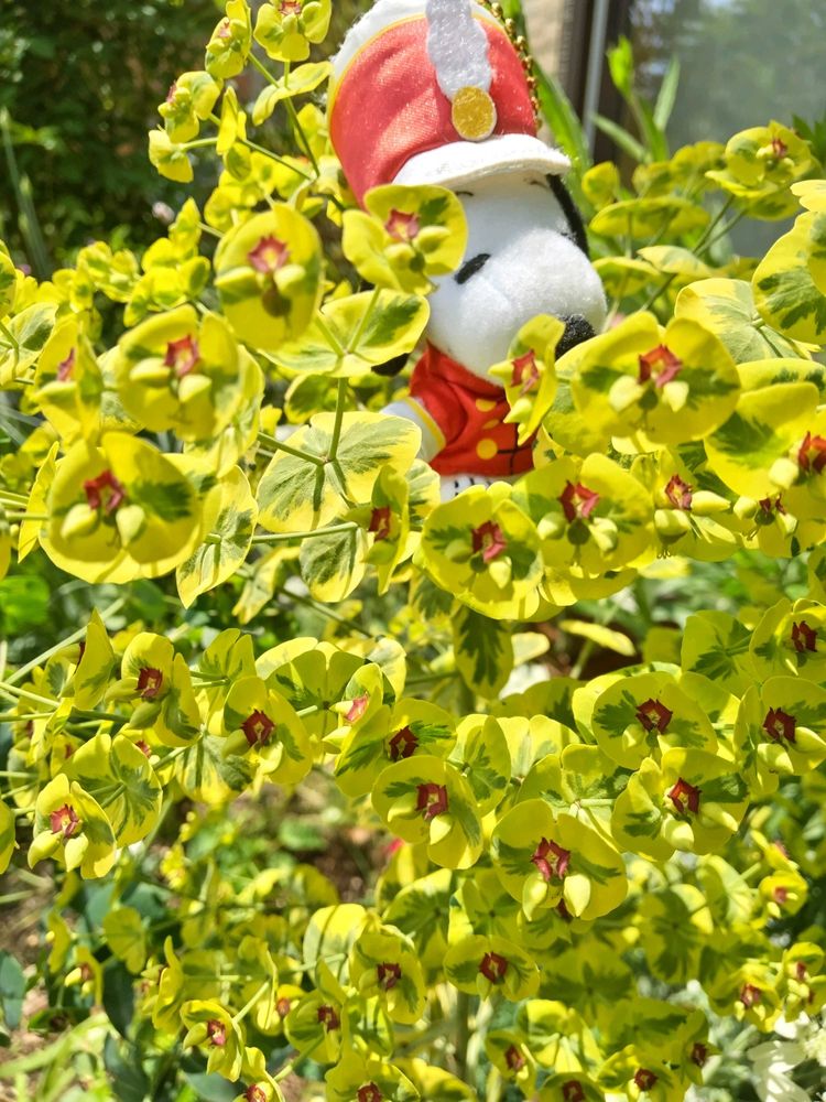 💛地植えのユーフォルビア・ゴールデンレインボーとスヌーピー🐶