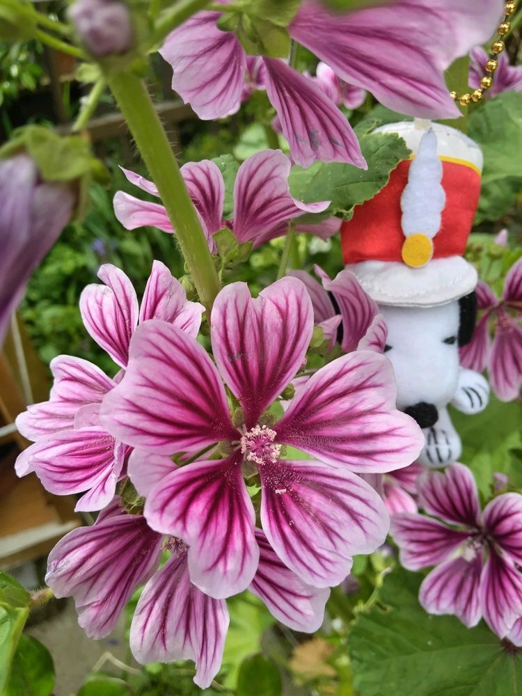🌸セメントの隙間からのゼニアオイとスヌーピー🐶