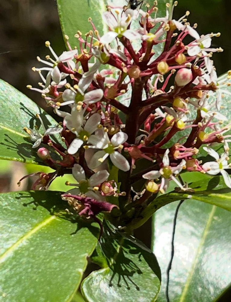 お邪魔~😃🙋 ミヤマシキミってこういうお花が咲くんだね🎵