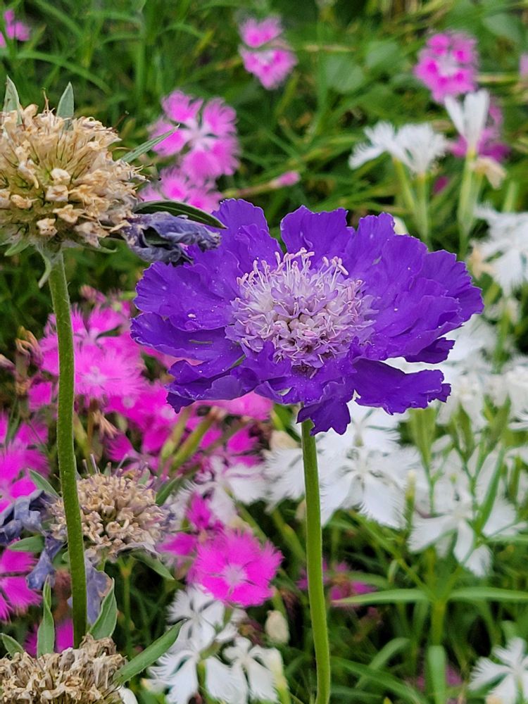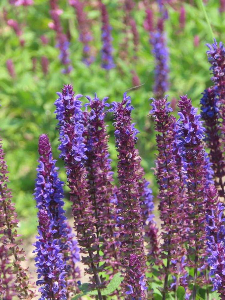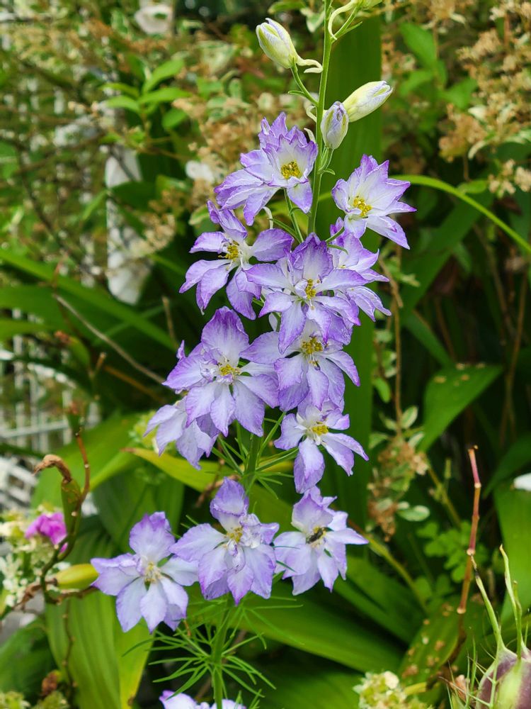 散策路沿いの花壇と我が家の庭に咲く青い花たち。