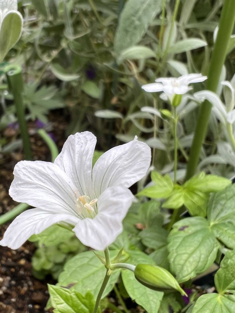 葉っぱはゲラニウムに見えないけど花は真っ白で綺麗🤍