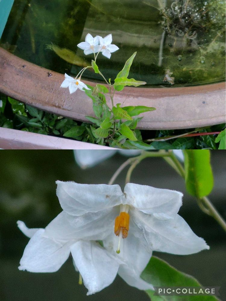 ツルハナナス 毎年 物が置いてある 隙間から 生えてきます 清楚な感じで 健気な花です😚
