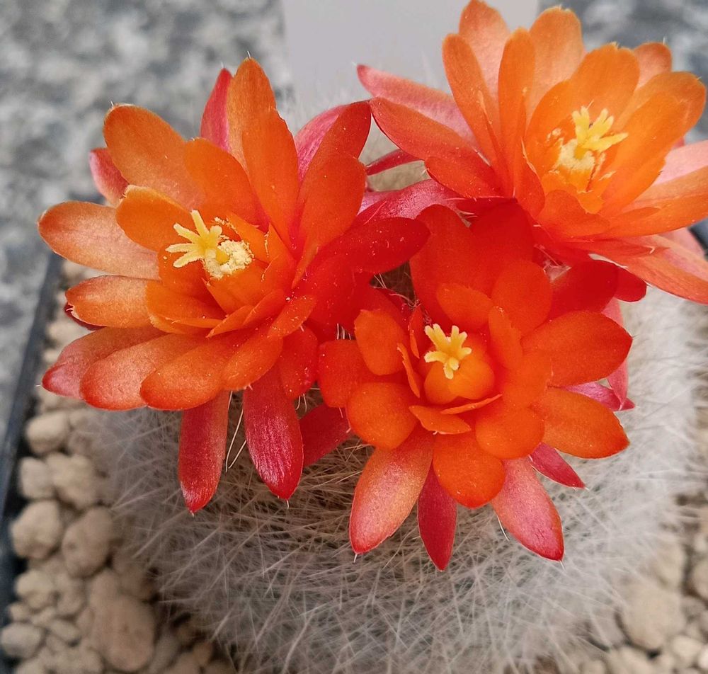 こちらは気候に関係なく咲いてくれて嬉しかったですね。橙色の花色は花としては少し地味ですがサボテンの花特有のパリッとした花姿が非常に端正で咲き揃った時には思わず感嘆の声が😅