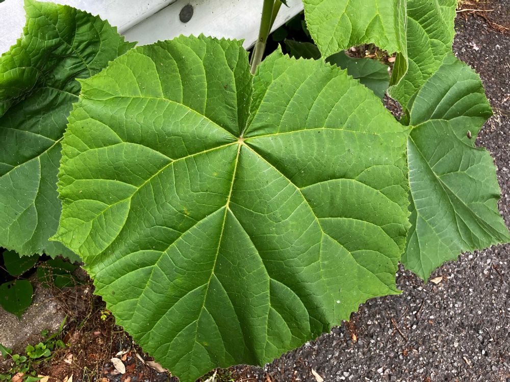 城見台^o^散歩 散歩道にこの大きな雑草の葉っぱです♪🌿名前があるんですかネェ〜!...どうも桐みたいですネェ〜🎶