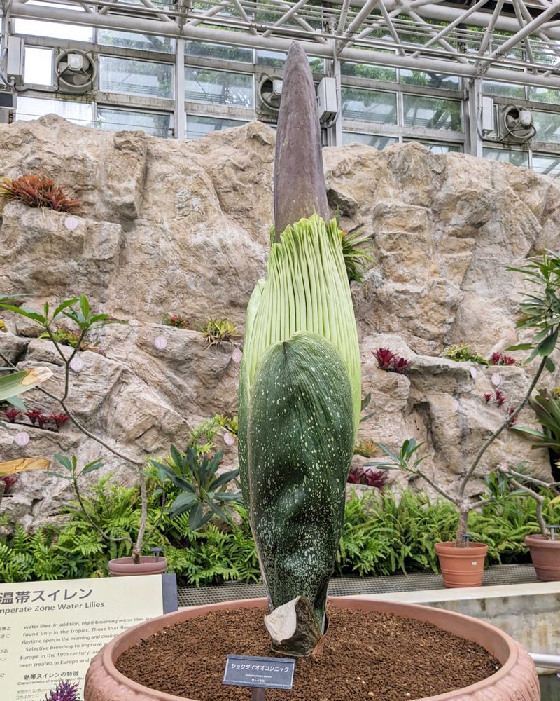 神代植物公園の温室の中にショクダイオオコンニャクの花が咲きそうです。