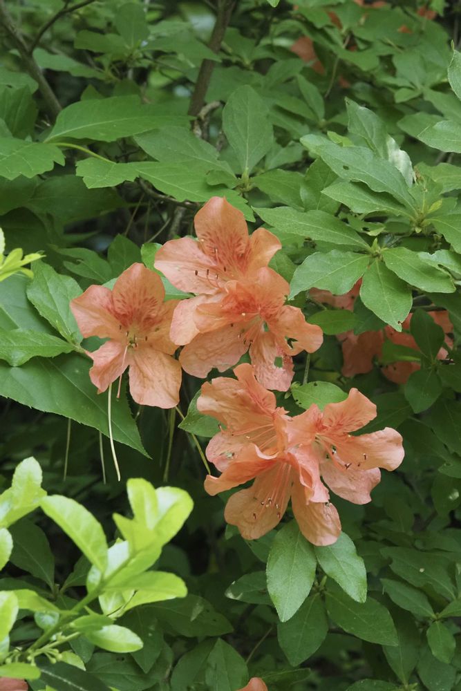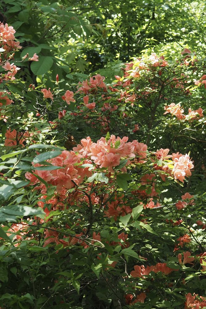 ④⑤ ヤマツツジ(山躑躅)ツツジ科ツツジ属の半落葉低木。山に咲く普通のツツジ。あまりにも普通で、あまりカメラを向けません。満開でした。陽が差し込むと、燃える様ですネ。美しい。