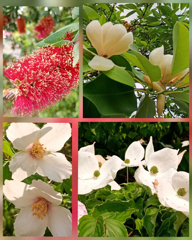 ③ブラシノキ、ヒメタイサンボク、ベルエトワール(梅花ウツギ)ヤマボウシ
