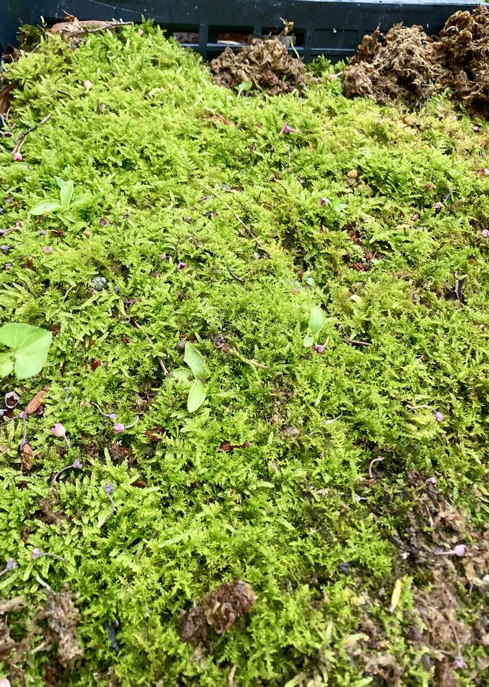 1枚目写真は、4月24日に、投稿した画像で、この時は、花苗のトレーを使って、苔を育成してますと、投稿!