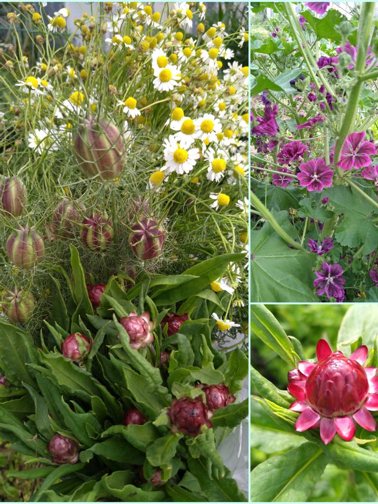 ハーブティー用にカモミールとコモンマロウ収穫☕