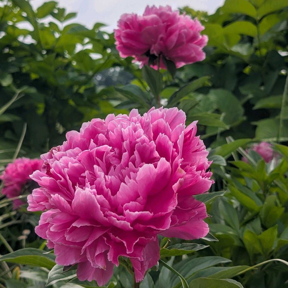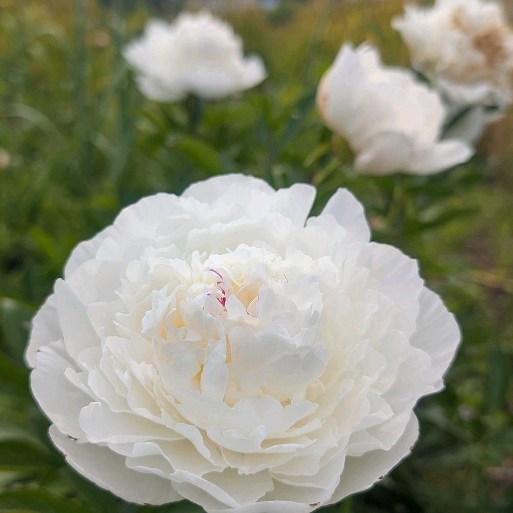 大きなピンクと白色のシャクヤクはダイナミック☺