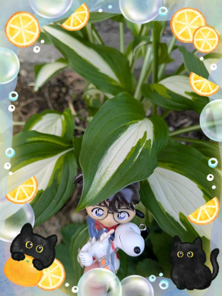 コナンが好きで植物と一緒に撮影するのを楽しんでいます♡