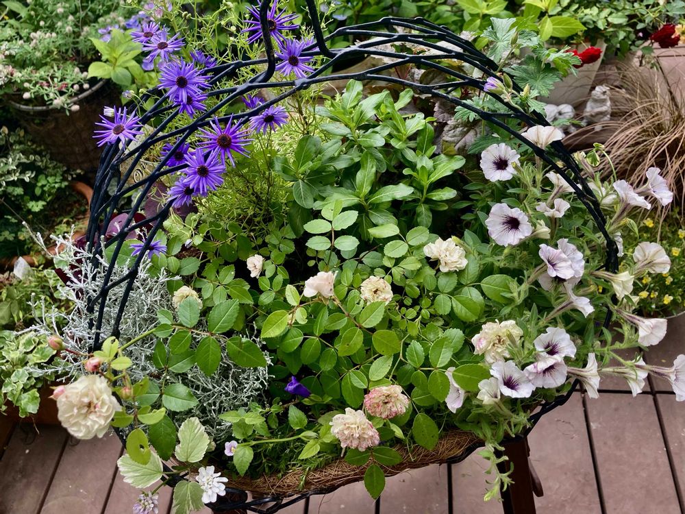 そちらで頂いたアイアンカゴ🧺で寄せ植えを作りました😄
