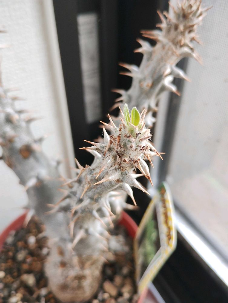 パキポディウム デンシフローラム、休眠中にお安く買ってきてました。やっとお目覚めしてくれてむちゃくちゃ嬉しいです❣️