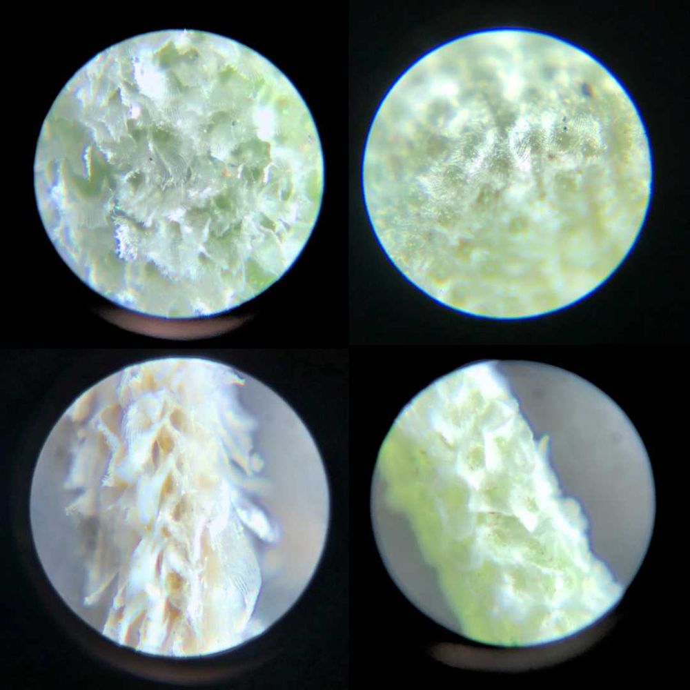 トリコームの形はそれぞれですが、よく見ると全てに共通して、魚のヒレのような繊細な筋模様が入っていました。