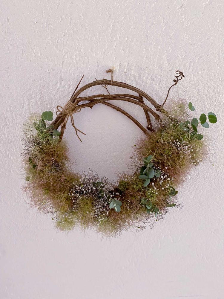 スモークツリーとカスミソウのリース可愛いですね💕