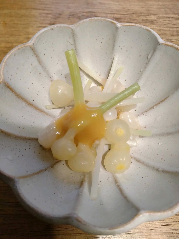 4)5秒ほどさっと茹でて、甘皮を取ってから辛子酢味噌でいただきました。