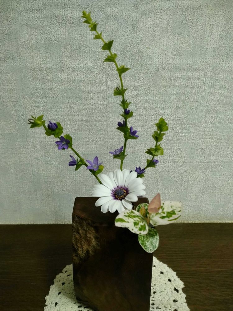 オステオスペルマムが主役になって、視線がキキョウソウを伝って下に下りて、オステオスペルマムにポンって辿り着いて止まる感じが絶妙だと思います✨✨