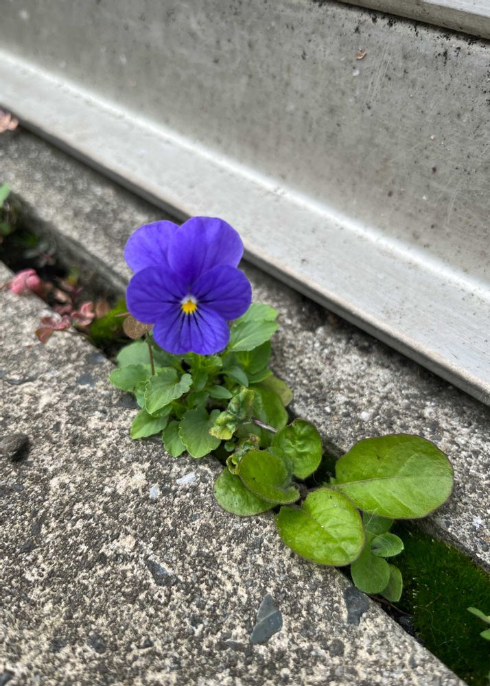 わずかな隙間から出てきたビオラとアリッサム☺️