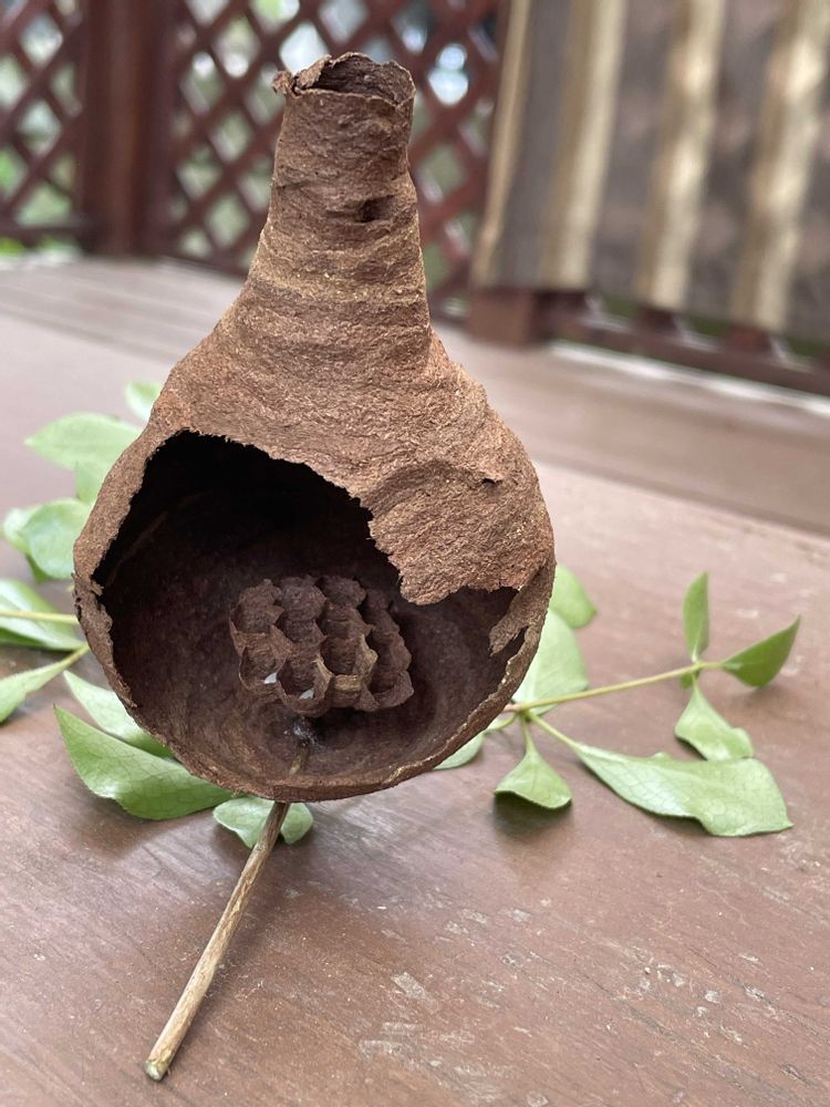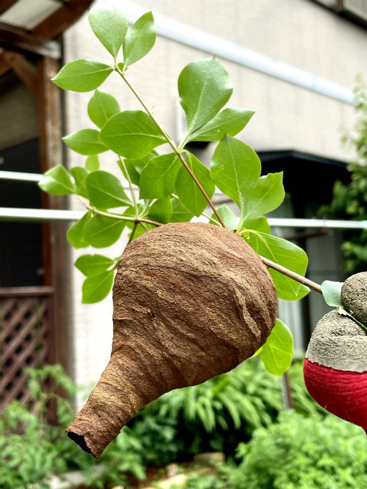 生垣のドウダンツツジを剪定していたら、蜂の巣発見⚠️⚠️まだ、小さいが刺されなくてよかったあー😮💨
