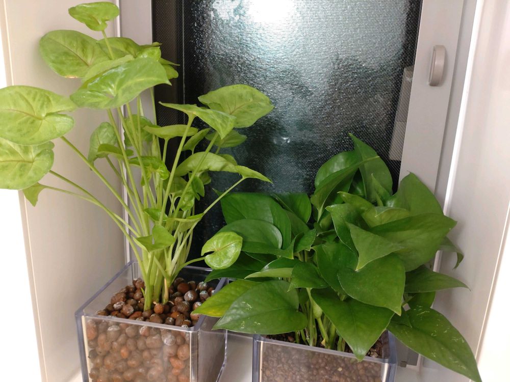 浴室に置いてあるポトスとシンゴニウム🌿