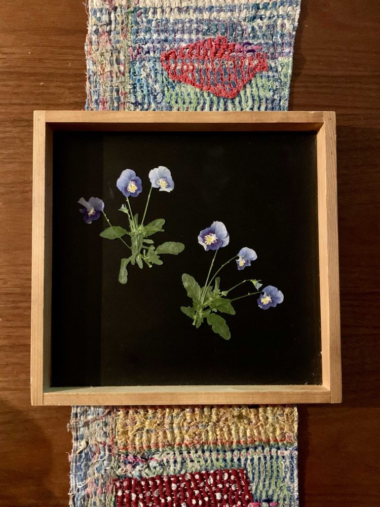 布は、カンタキルトのハギレが格安だったので✌️ビオラも間も無く終わりを迎えるのでさみしくなりますが、押し花まで楽しめたので大満足です♡