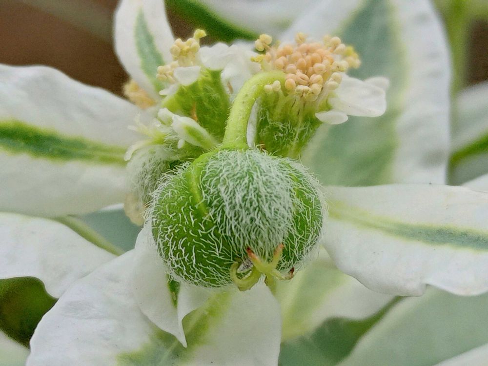 小さな花が咲き赤っぽい蕊?が出て来て白くなり種が出来始めました🤍✨