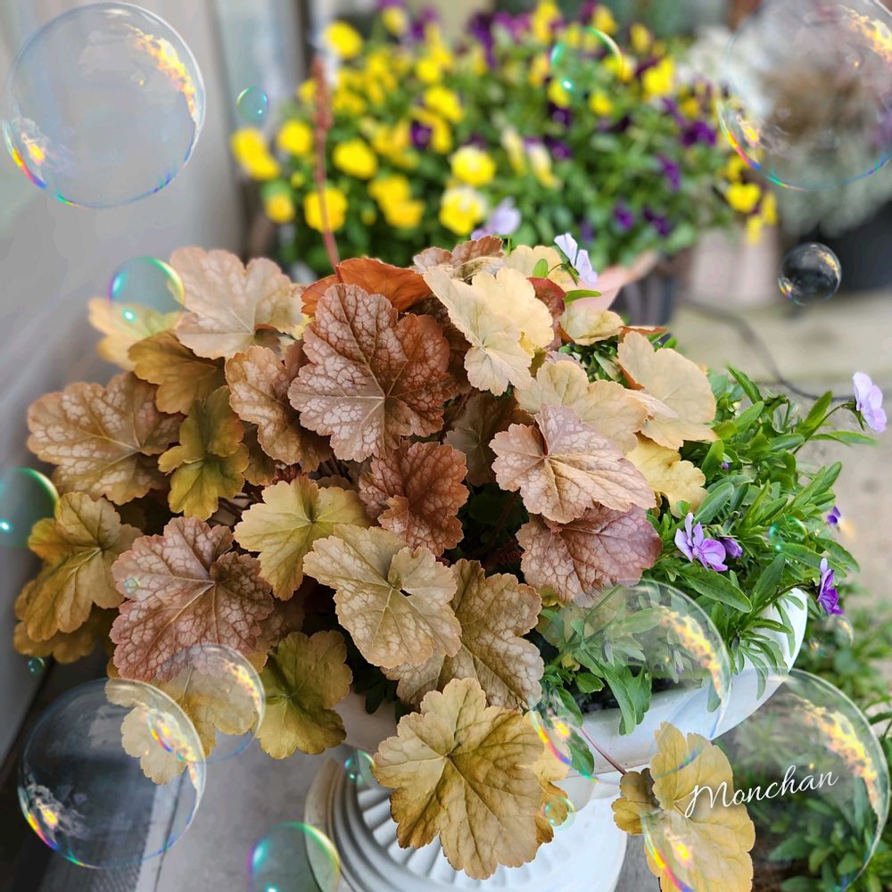 昨秋にビオラ・なごみと一緒に寄せ植え🪴冬場も屋外軒下で過ごし、4月初旬は古い葉が枯れて、GW過ぎから新しい葉が繁ってきました🤗ヒューケラは、美しいですね~✨