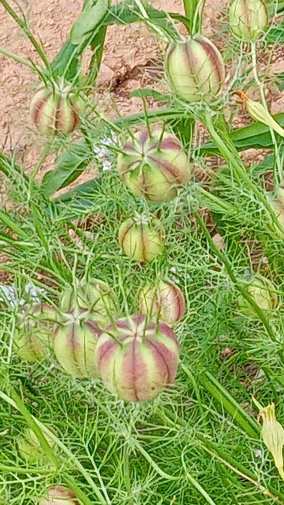 ①は、変わった模様?フウセントウワタ?と思ったら、花も不思議な形のニゲラの実でした。そういわれれば葉は確かに…