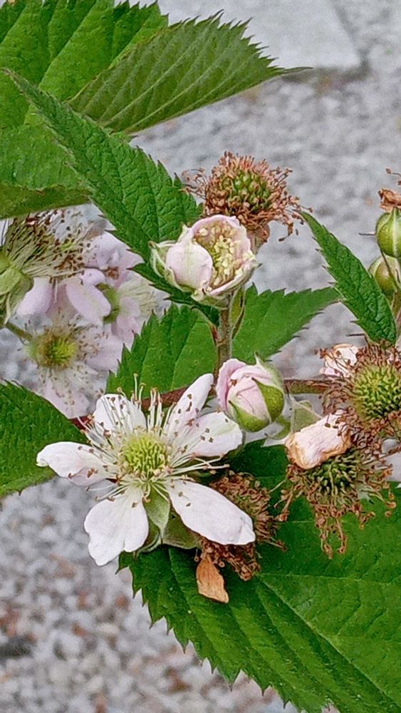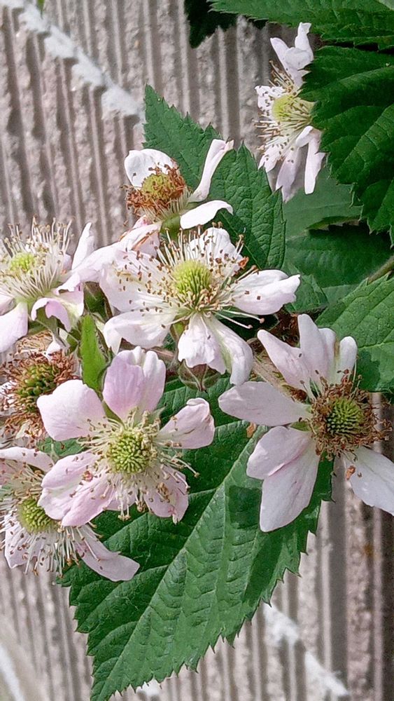 ②③は、野バラのような木苺の花?と思ったら、Googleでブラックベリーと出ました。早く黒い実にならないかな、ワクワク💕