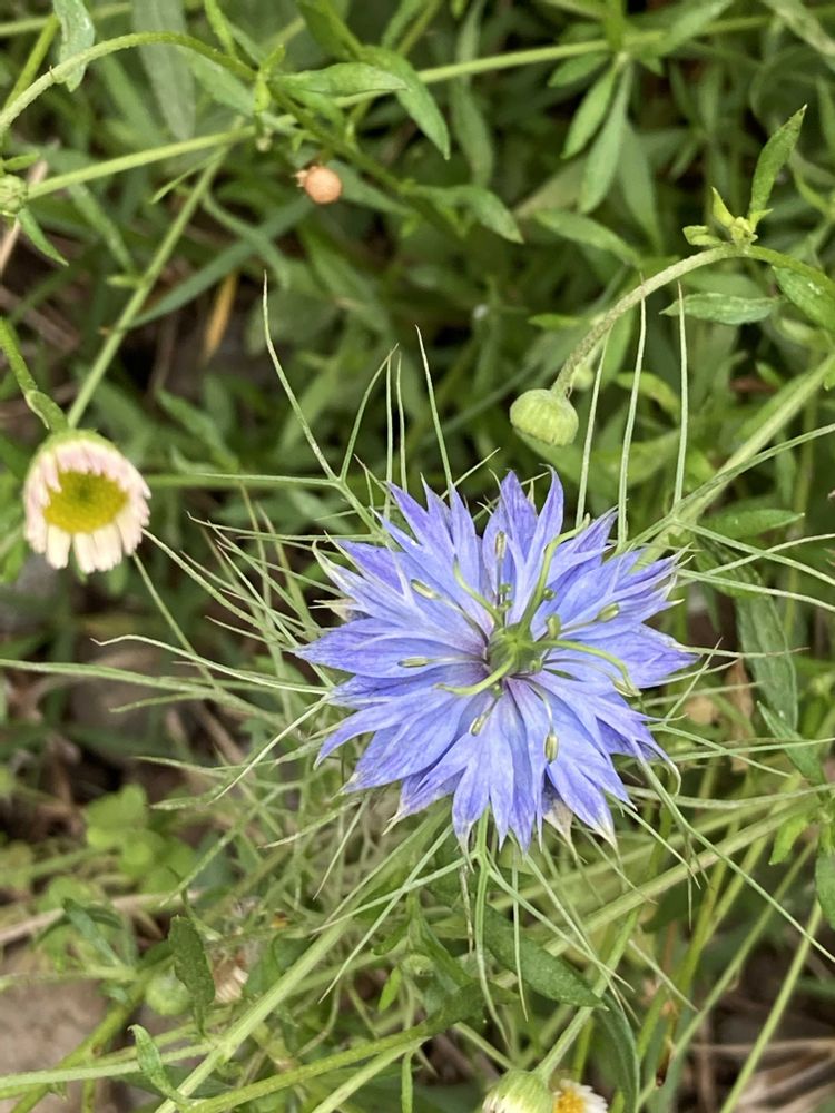 ニゲラの投稿をした時に白しか咲かないと嘆きましたが、源平小菊の近くにブルーが咲いていました🩵
