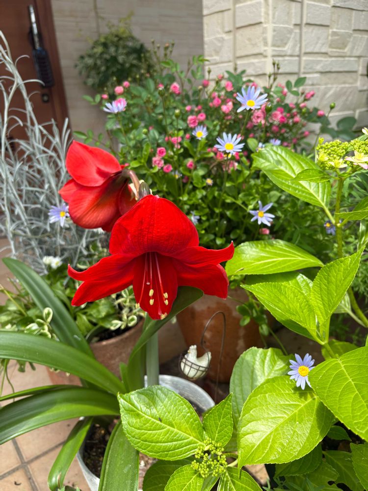 真っ赤なアマリリス❤️で目が覚めたよ😁